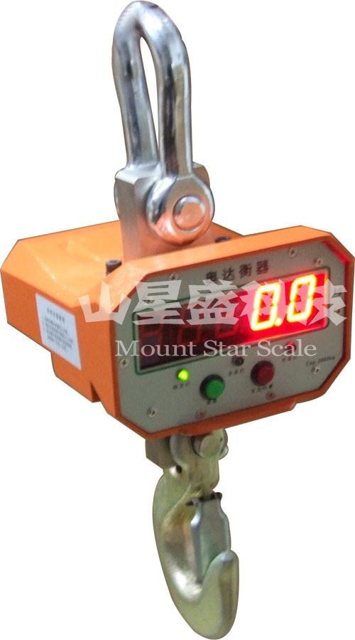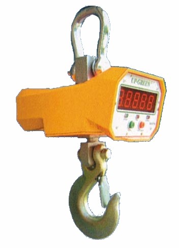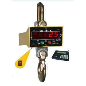 將電子吊秤的吊環(huán)掛在起重機(jī)的吊鉤上,當(dāng)電子吊秤的吊鉤上掛上物品后,在秤體內(nèi)的傳感器受到拉力產(chǎn)生變形,傳感器內(nèi)的電流發(fā)生變化,然后這個變化的電流通過A/D轉(zhuǎn)換,再通過發(fā)射機(jī)將無線電信號發(fā)出,根據(jù)國家無線電管理委員會的規(guī)定,電子吊秤一般是用230MHZ和450MHZ發(fā)出的,接收機(jī)接收到信號以后傳輸給儀表,然后經(jīng)過儀表的轉(zhuǎn)換計算,最終顯示出來。